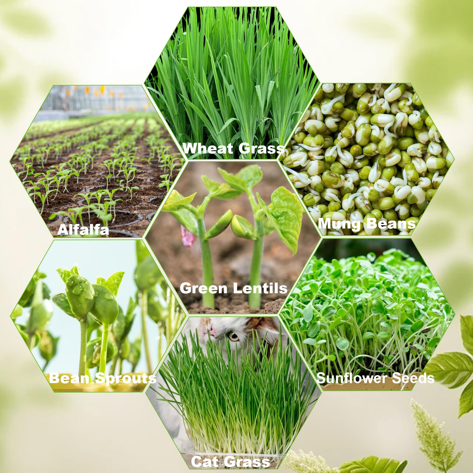 - Mitmekülgne kasutus: Sobib paljudele seemnetele, nagu mungoad, alfalfavõrseid, nisurohtu, rediseid ja herneid.