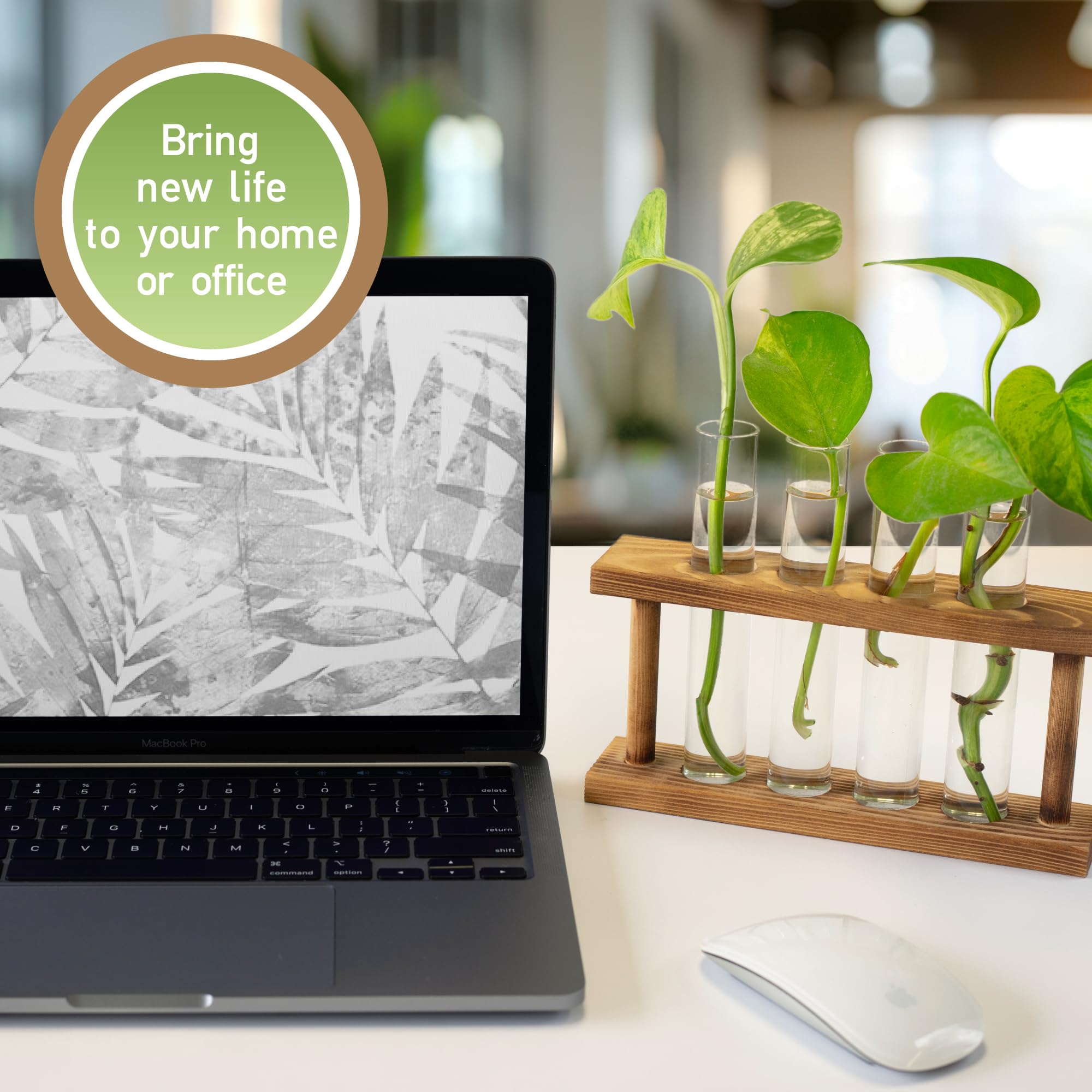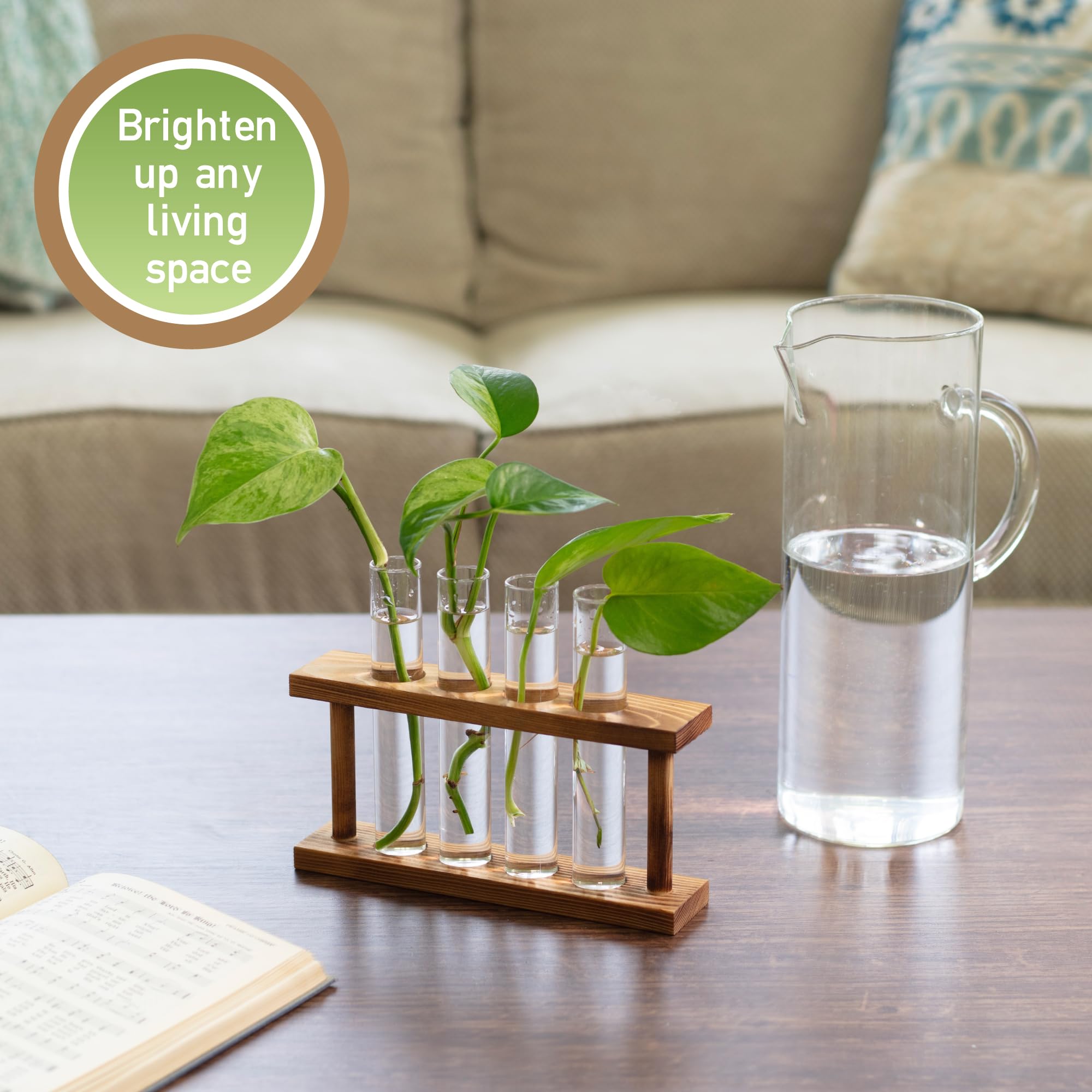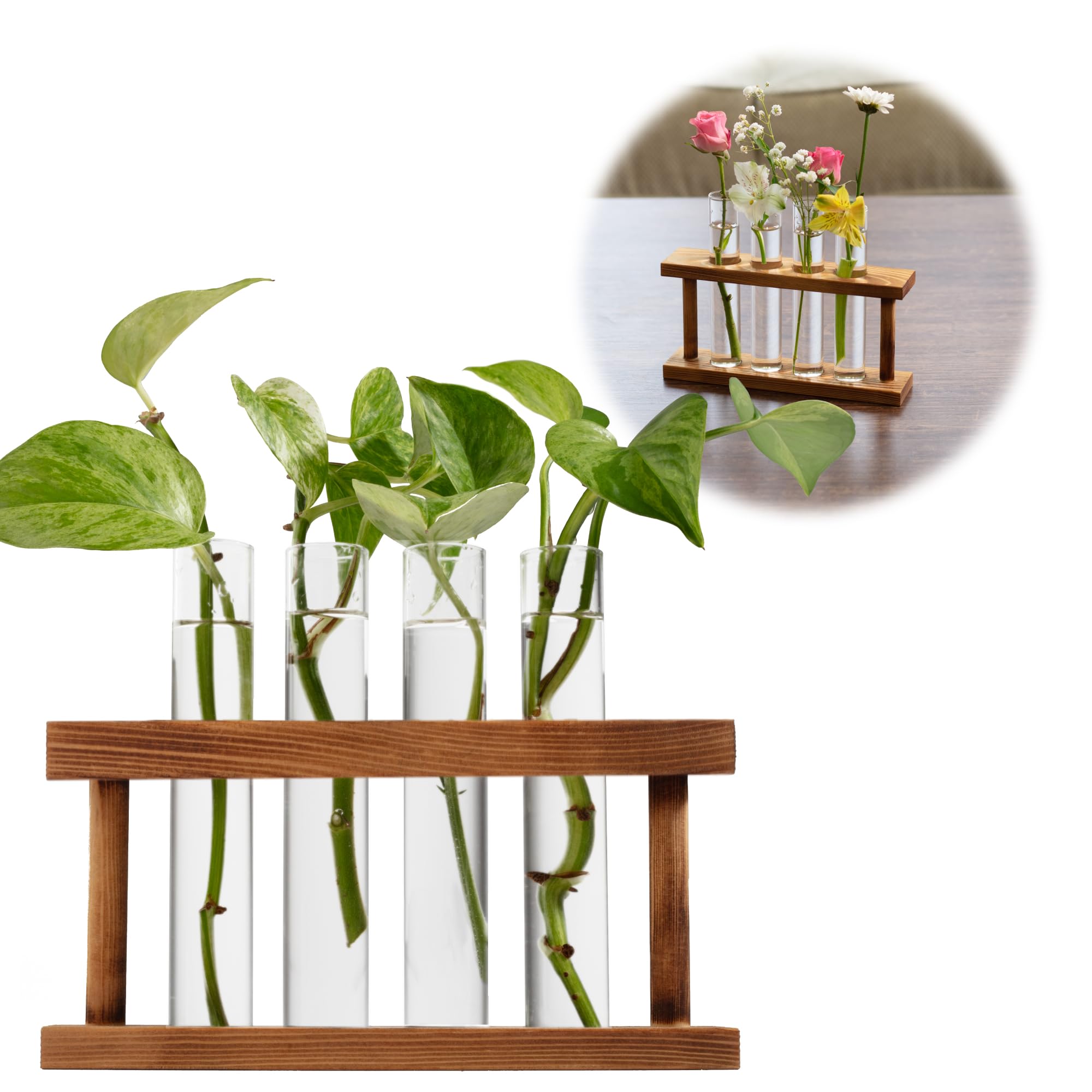 D’Eco klaasist taimekasvatuse jaam on kaunis ning praktiline viis oma kodu sisustamiseks ja taimede kasvatamiseks. See stiilne komplekt koosneb neljast klaastorust ja elegantsest puidust alusraamist, mis võimaldab sul hõlpsalt jälgida taimede juurdumist ja kasvu.