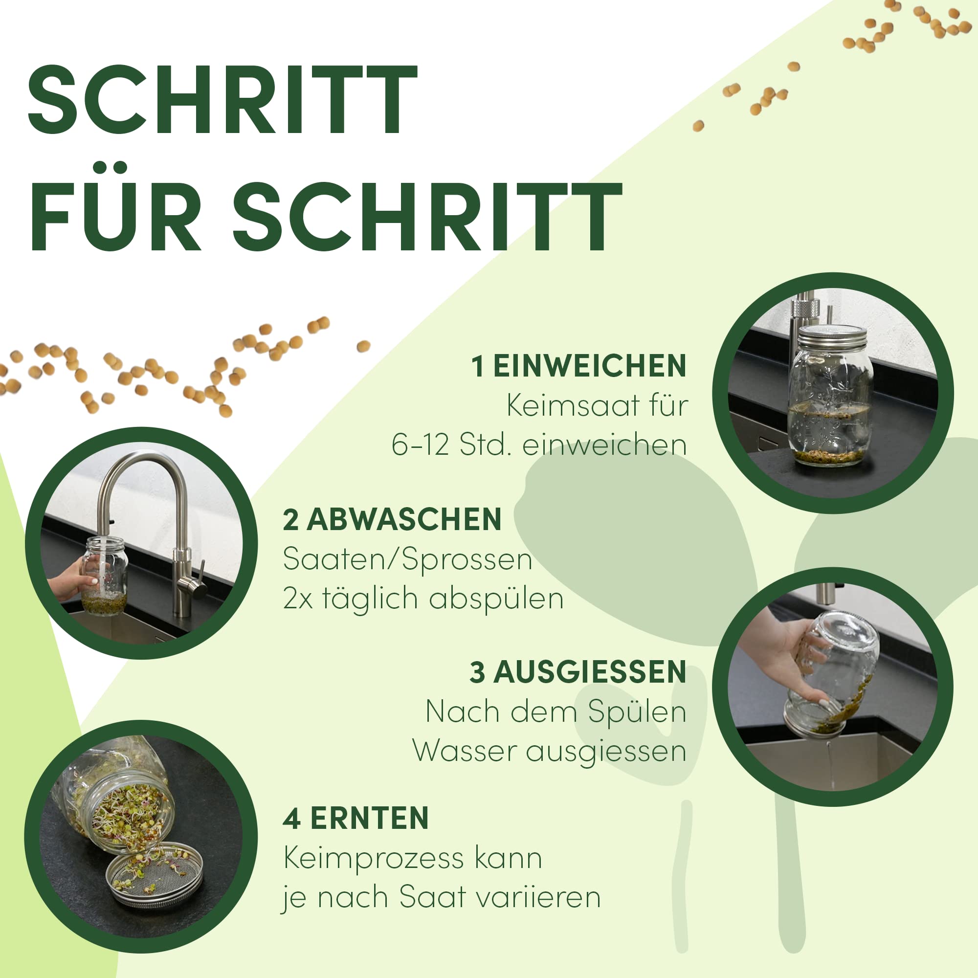 - Sobib erinevatele seemnetele – ideaalne läätsedele, mungoa idanditele, brokkoli idudele ja paljudele teistele.