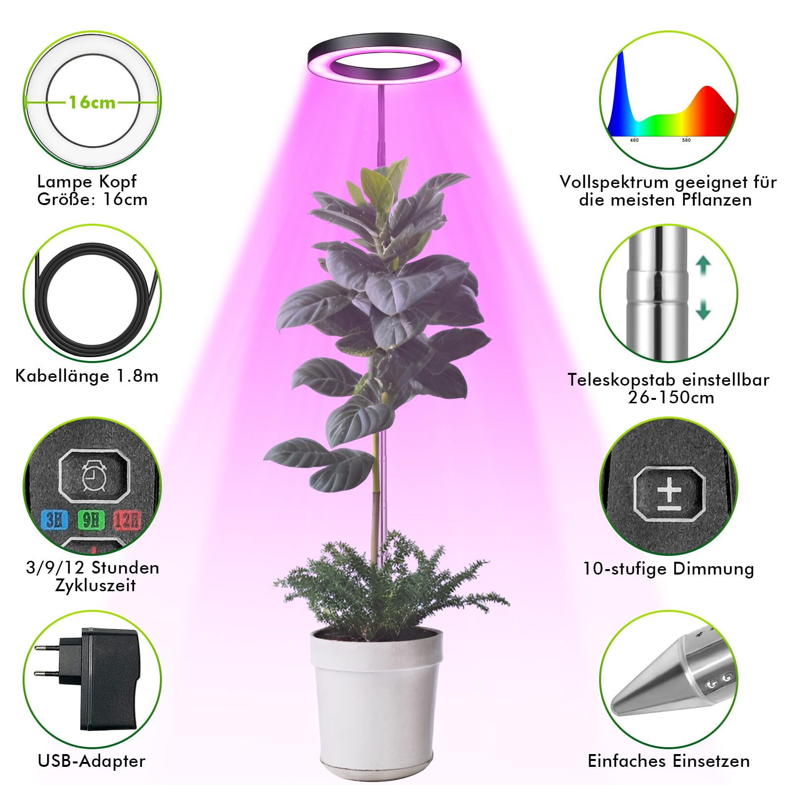 Lambi paigaldamine ei vaja keerukaid tööriistu – lihtsalt kinnitage see toataime potti, reguleerige soovitud kõrgust ja suunda, ning lülitage see sisse! Sobib suurepäraselt: