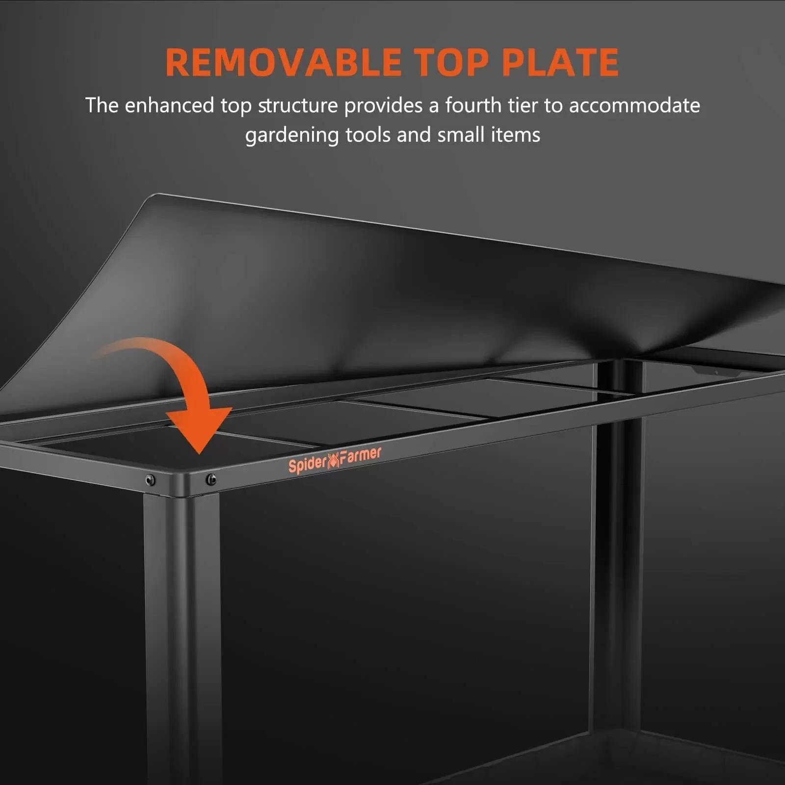 Oma avara ruumi ja laia rakenduse tõttu on Spider Farmer taimealus ideaalne kasutamiseks elutoas, rõdul, terrassil või kasvuhoones. Alus on 117 cm lai, 38 cm sügav ja 178 cm kõrge, nelja metallkorruse ja 56 cm vahemaa iga kihi vahel.