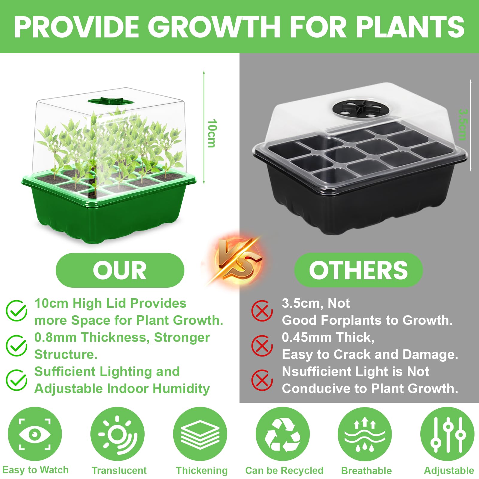 - Komplektis kõik vajalik – sisaldab 10 seemnealust, 10 veekindlat aluskaussi, 10 läbipaistvat kaant, 20 taimesilti, külvamise tööriistu ja kaitsekindaid.